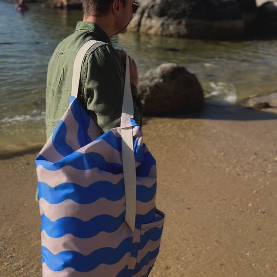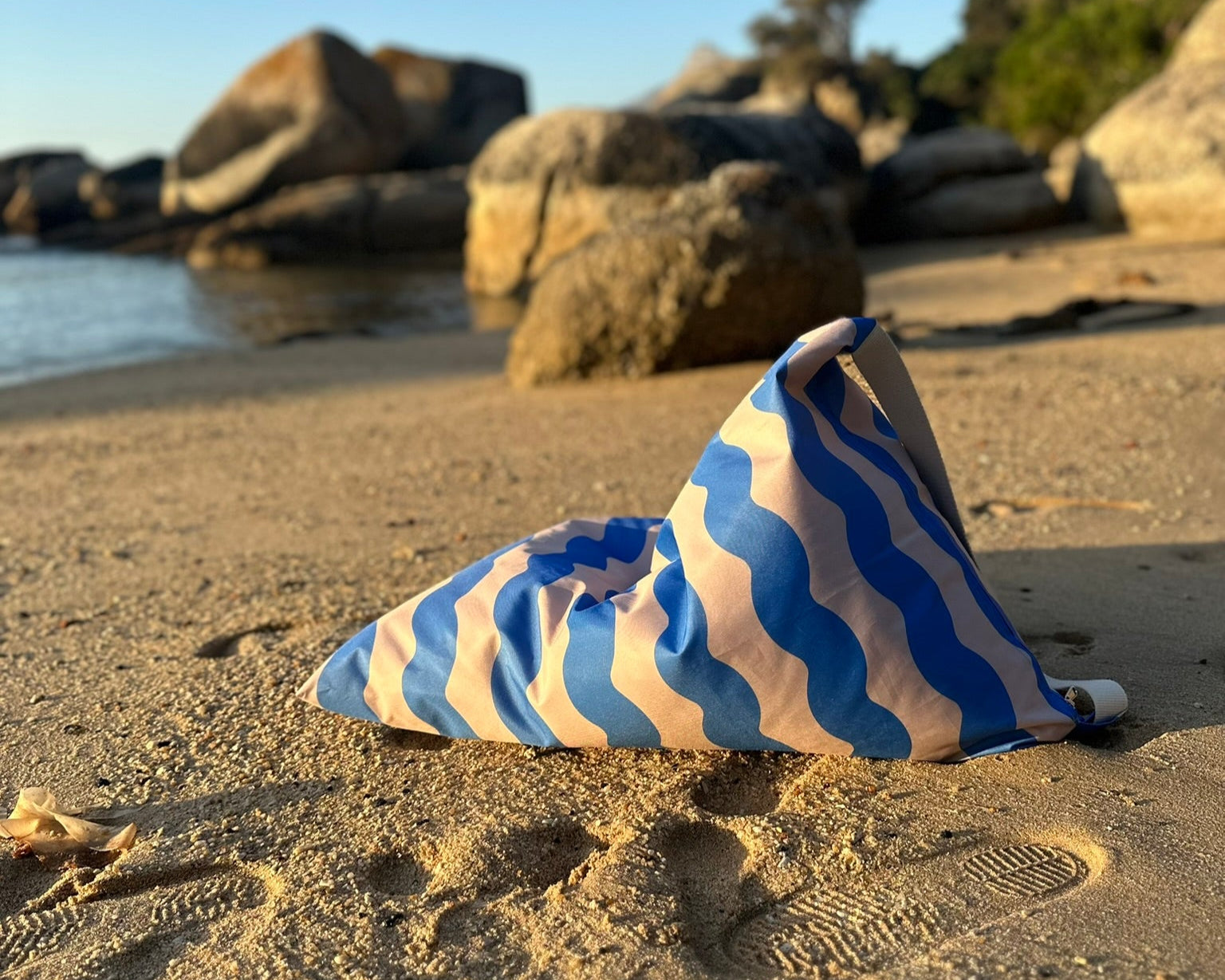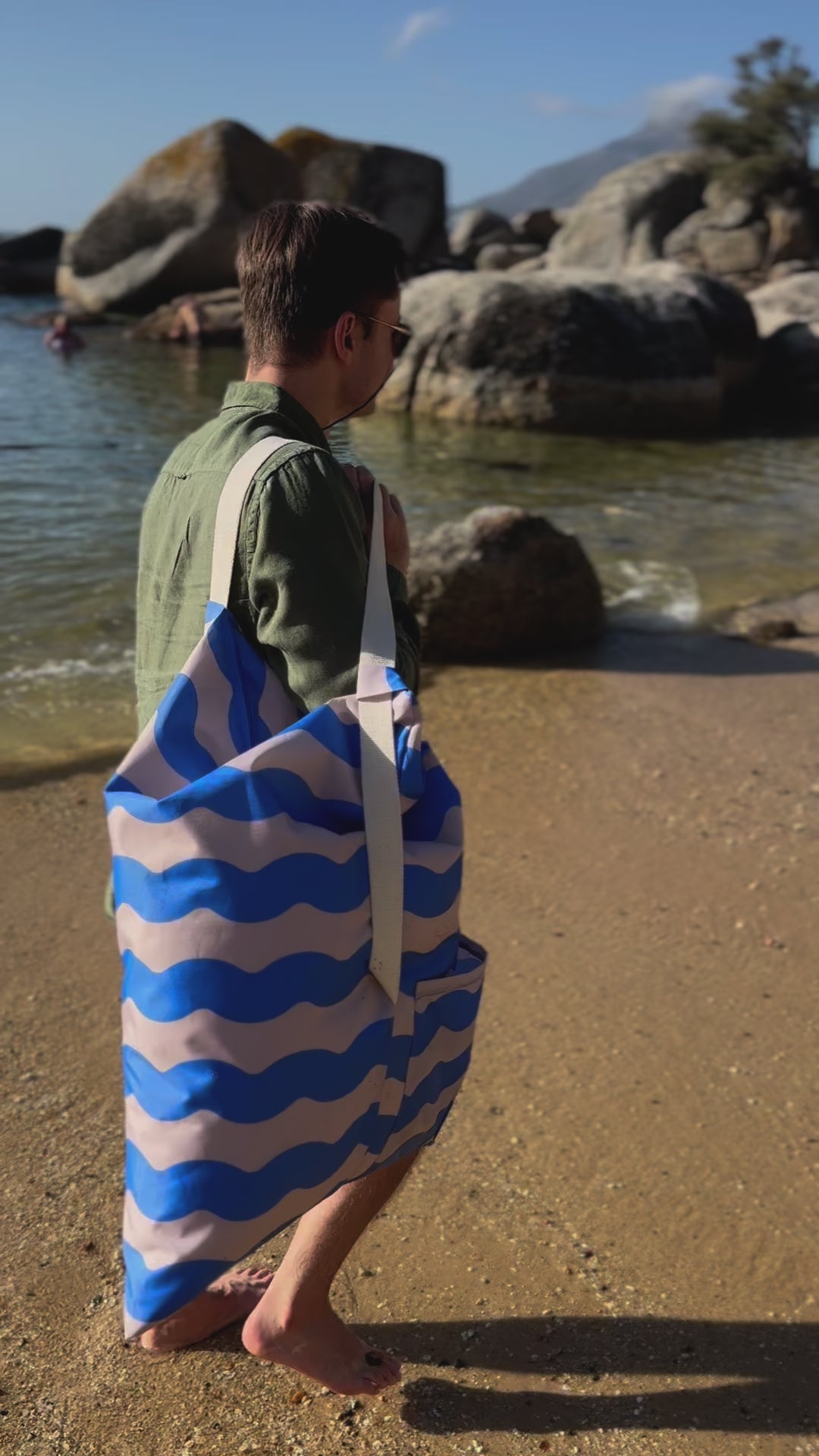 Add a pop of fun to your beachy vibes with our Ocean Wave beach pillow! This soft, plush, and water-resistant pillow is perfect for outdoor adventures—whether that's by the pool, beach, or in your own backyard retreat. The vibrant blue stripes reflect the gentle motion of ocean waves, creating a sense of calm and relaxation. Its design captures the soothing rhythm of the sea, making it perfect for unwinding anywhere.
